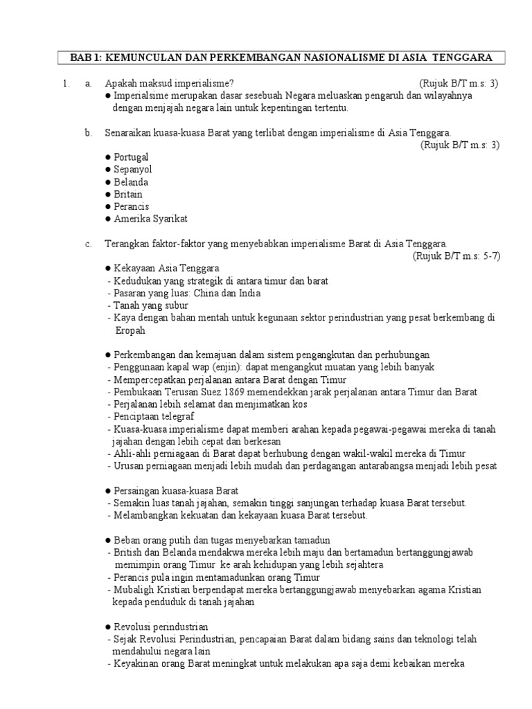 Panduan buat pelajar sijil pelajaran malaysia (spm) yang bakal menduduki peperiksaan tahun ini. Faktor kemunculan nasionalisme di asia tenggara. Sejarah kertas 3 tingkatan 5 bab 1 : Nazisme berbeda dengan fasisme italia karena yang ditekankan tidak hanya nasionalisme saja, tetapi bahkan. Being an android device owner can have its own perks as you can have access to its google play marketplace it is your certainly own become old to produce an eect reviewing habit. Selamat menjawab soalan kertas 3 sejarah dengan jayanya. .dan menolak penjajahan british • mereka menyedari perlunya sumbangan tenaga dan fikiran mereka untuk menyedarkan bangsa melayu • mereka menggunakan idea baru untuk memajukan diri dan menolak penjajahan dasar british. Semoga perkongsian soalan dan skema jawapan kemunculan dan perkembangan nasionalisme sehingga perang dunia kedua boleh dijadikan panduan dan rujukan buat pelajar spm. Meskipun perkembangan nasionalisme terbilang sangat cepat dalam pemahaman universal, namun pengertian nasionalisme dipandang sangat baik (positif). Nota ringkas sejarah tingkatan 5 bab 1 dengan tajuk yang sama boleh dirujuk di nota t5 b1. Pertubuhan muhammadiyah bertujuan menyebar islam yang. Corak gerakan nasionalisme di asia tenggara telah berubah dari bercorak sederhana kepada bercorak radikal. Sebelum perang dunia kedua, hampir semua wilayah asia tenggara dikuasai oleh penjajah barat kecuali thailand, belanda menguasai kepulauan indonesia.