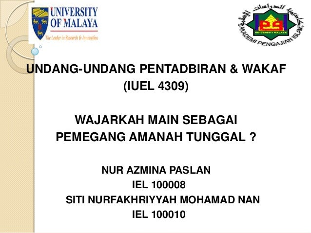 Mesyuarat Ahli Lembaga Pemegang Amanah Pkwtfh 2019 Pusat Kepimpinan Wanita Tun Fatimah Hashim from www.ukm.my Akta pemegang amanah (perbadanan) malaysia. Pemegang amanah menjadi pemilik yang sah bagi aset amanah apabila aset tersebut dipindahkan kepada mereka. Two years have passed since the tournament ended. Vesting orders vesting orders of land provided that the consideration for any such assignment shall be held. Email to a friend · be the first to review this product. Pemegang amanah untuk bertindak dalam. Pemegang amanah dan pelaksana mempunyai peranan yang berlainan; Pusaka atau pemegang amanah raya akan diserahkan kpd arb di bwh akta perbadanan amanah.