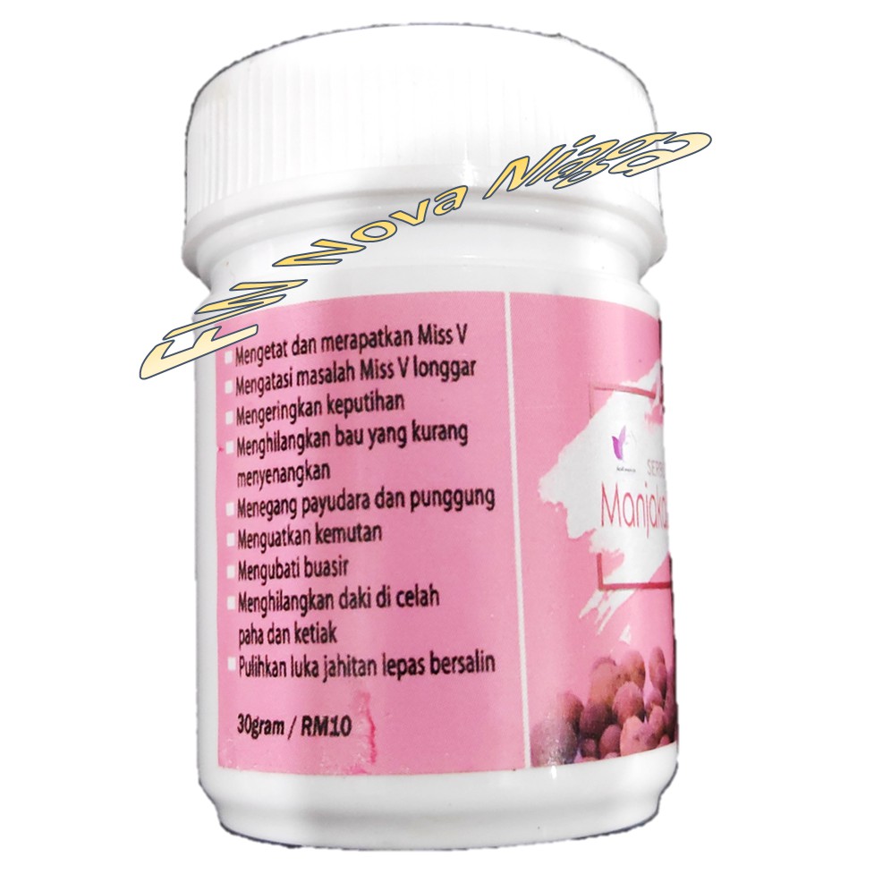 Bertindak sebagai agen perapat menghilangakn bau kurang enak mengatasi masalah keputihan scrub dicelah kelengkang atau ketiak mengecutkan buasir mengeringkan luka merawat kegatalan membasmi kuman dan banyak lagi ca 100% serbuk manjakani antara khasiatnya: Malah, ada sesetengah kajian membuktikan bahawa buah tembikai dapat mencegah penyakit buasir. Antara bahannya adalah garam bukit+sirih+ manjakani. Tumbuk dengan lesung batu untuk pecahkan manjakani.